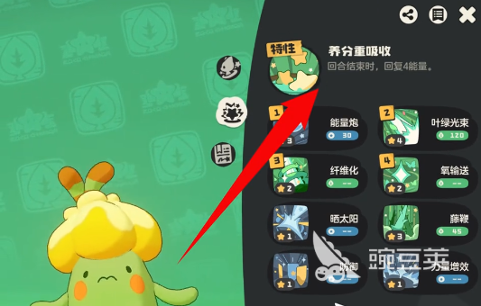 奇力草还会逐步的进化,不同阶段的技能在搭配之后,也会有对应的讲究。进入到二阶段时,推荐技能组合就会变成纤维化,还有防御,这套技能会兼顾输出,还有基础辅助。纤维化就可以给敌方施加负面的效果,叶绿光束就是核心的输出技能。防御则成为提升自身生存能力的关键,不管是应付小怪还是普通的首领,这套技能全部都可以稳扎稳打。当奇力草在完成第三阶段首领进化之后,就可以针对技能去做出调整,调整之后技能正好可以符合它的核心特色。