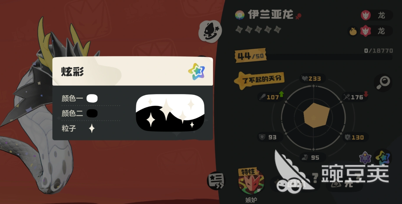 伊兰亚龙为龙属性精灵,由伊雷龙完成最终进化而来。其专属特性“嫉妒”可在自身处于蓄力状态时,解除技能释放限制,允许任意已习得技能无冷却施放。基础能力方面,魔攻高达190点,构成核心输出维度;物攻则为91点,定位明确偏向魔法爆发型主力。