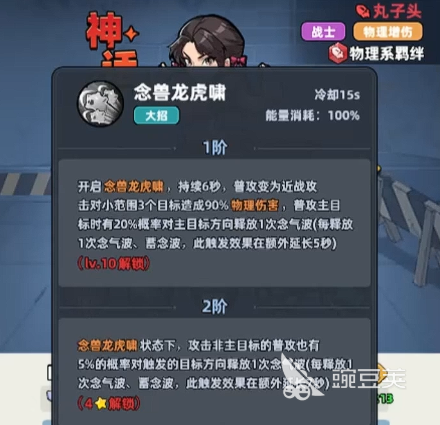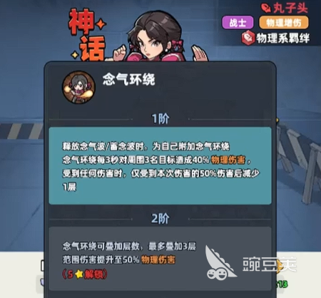 如果大家想要培养丸子头的话,她达到1星的情况下可以解锁的是一个被动功能,叫做念气环绕,这个功能解锁了以后,她就会有足够多的攻击以及防御属性,此时在被动一星的情况下,她可以通过释放自身技能,然后在后续的3秒时间之内,给周围的敌人造成范围型的伤害,同时她自身是可以获取50%的减伤防护护盾,这个护盾对于他来说是非常重要的一类生存机制,如果需要这方面能力的话,这个护盾是一定要用出来的,如果将她提升到二星的话,那么她触发的这个被动叫做雷龙出海。