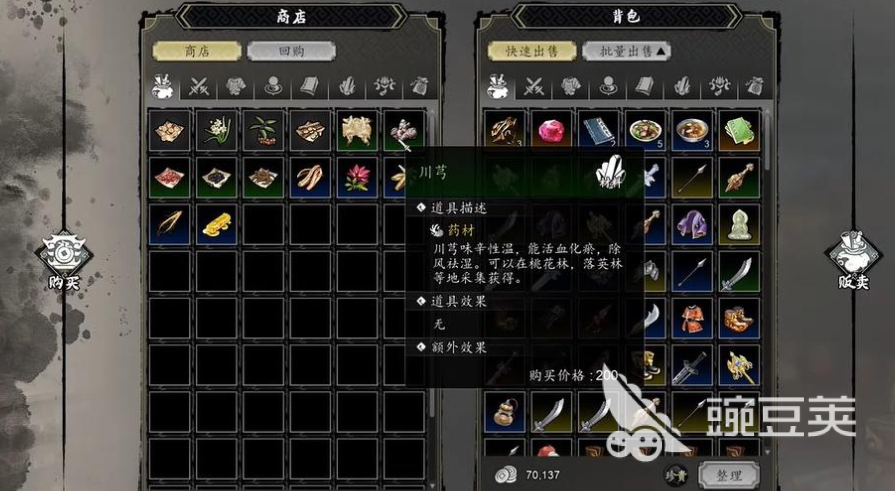 假如玩家现在已经触发了支线任务,需要大量川穹,可以选择去特定位置采集,也可以直接去南疆寻找药材商,在药材商这里会售卖大量药材,除了川穹之外还会有很多其他材料,每个川穹需要消耗200铜钱,想快速完成任务的玩家,可以直接去寻找药材商购买,不用再耗费过多的时间去场景里搜寻草药,适合想要节约时间,同时铜板数量又比较多的玩家,能快速完成游戏里的任务,推进后续挑战。
