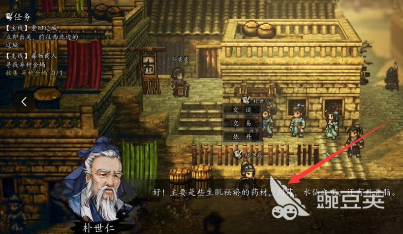 游戏里会设定大量的主线和支线任务,在挑战支线筹备药材的时候,玩家将会进入到南疆区域,靠近南疆兵营之后,玩家会发现里面有大量伤兵,但没有药材可以医治,经过和朴世仁大夫对话,玩家可以了解,兵营缺少最重要的川穹,导致很多士兵没有办法得到治疗,想获取川穹,玩家可以去游戏的特定位置采集,在落英林和青萝山野外玩家能看到大量植被,在植被里隐藏着大量草药,靠近植被之后会弹出采集按钮,点击采集角色会自动采集川穹。