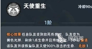 天使并非是站在前线的输出核心,所有的技能机制都是围绕守护。从一开始的复活,再到范围护盾,就可以给团队打造一个生存防线,能有效提升全队的被动增益效果。让队伍在高压作战的过程中,可以大幅度的提升容错的几率,不管是高难度的副本,还是限时生存挑战。有天使存在,那整个团队的作战持续能力就可以迎来飞的提升。天使的核心技能也会有各种不同的妙用,解锁马上就会生效的天使重生,可以让队友在受到致死伤害时变成黄色光球。