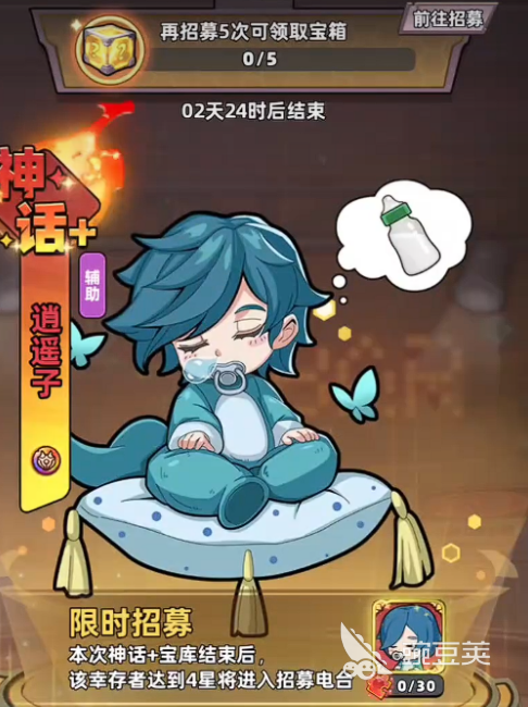 先说怎么获得他。逍遥子只能通过限时神话卡池抽取,不是常驻池子里有的那种。保底机制下,大概需要抽几百次,才能比较稳定地拿到,对于新手来说,确实需要攒一段时间的资源。另外也可以通过累计抽卡的积分去兑换,所以如果正好赶上开池子,可以两条路一起走,省一点资源。