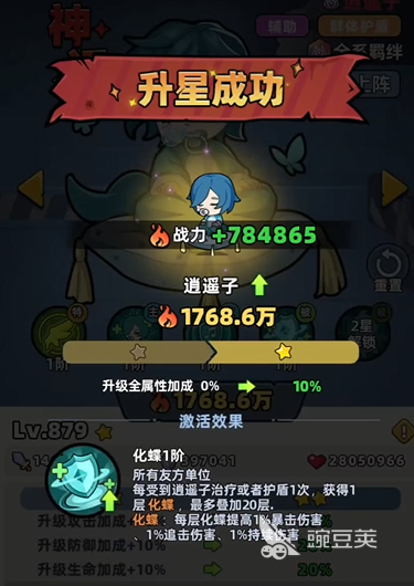他的核心机制其实不难理解。简单说就是,每次给队友加血或者加护盾,全队就会获得一次暴击率和攻击力的提升。这个触发条件非常宽松,不需要打普攻,也不需要满足什么特殊条件,只要正常用技能辅助队友,增益就会自动叠上去。而且这个加成会随着逍遥子的星级一起变强,所以后期升星之后效果会更明显。