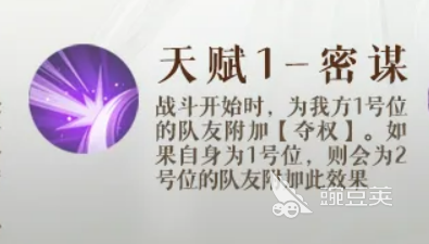 先说天赋"密谋"。战斗一开始,庞羲会自动给1号位的队友附上【夺权】。如果庞羲自己站在1号位,那就转移到2号位身上。这个天赋是被动触发的,不需要手动操作,但站位要提前想好。1号位一般建议放输出能力强的角色,这样开局第一时间就能进入有效状态。