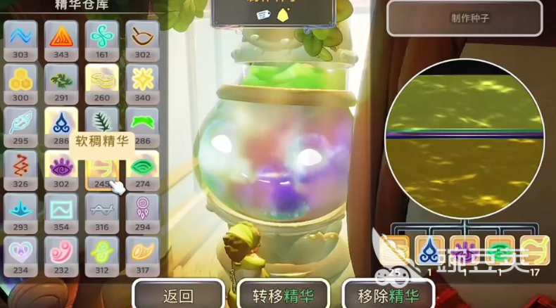 因为开荒玩法给大家的自由感是很强的,所以在其中也为大家带来一部分限制,就是冒险挑战,冒险挑战需要大家进入洞穴之中,在这里需要前期通过解谜之后才能解锁洞穴当中的战斗,而且需要通过种子培养来了解这里的各种生态环境之后才可以解锁洞穴,所以一开始的主线就是让大家去通过种世界种子,来推动整体的进程,世界种子在这里并不是一个普通道具,而是后期大家要激活这里土地最重要的一类道具,包括大家主线任务就是要重塑地貌的时候,这里各种建造的权限也是跟种子有关系的,游戏当中的世界种子大家没有办法直接在野外拿到,所以想要也大家也只能通过炼金台来进行合成,合成的材料就是精华。