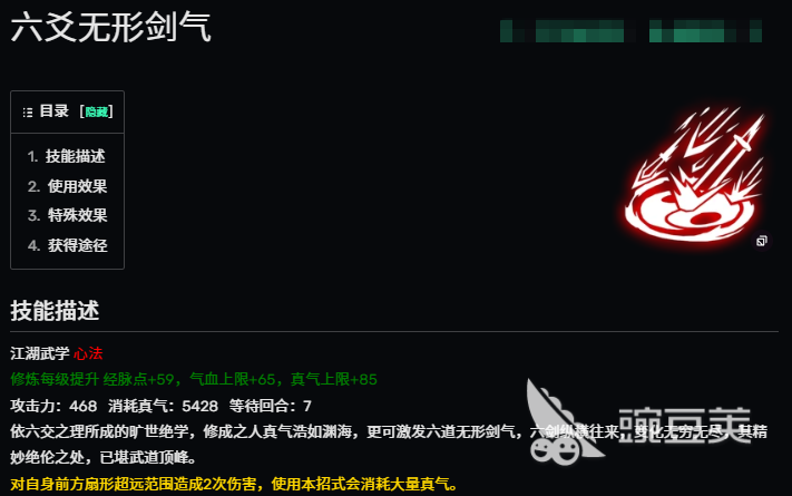 第二个为大家推荐的就是六爻无形剑气,这个剑法招式当中对于其中的修炼提升效果都非常高,而且在使用这个功法的时候,还可以对自身前方扇形范围当中的敌人,造成两次连击的伤害,使用这个招式的时候,同样也会消耗大量的真气,使用了此类心法攻击敌人之后,每一次攻击都会根据目标对自身添加两层强攻的能力,持续3个回合之后,每一层的强攻都会让他攻击能力上面增加5%的数值,最高的情况下还会叠加9层,所以最后达到45%的增长。