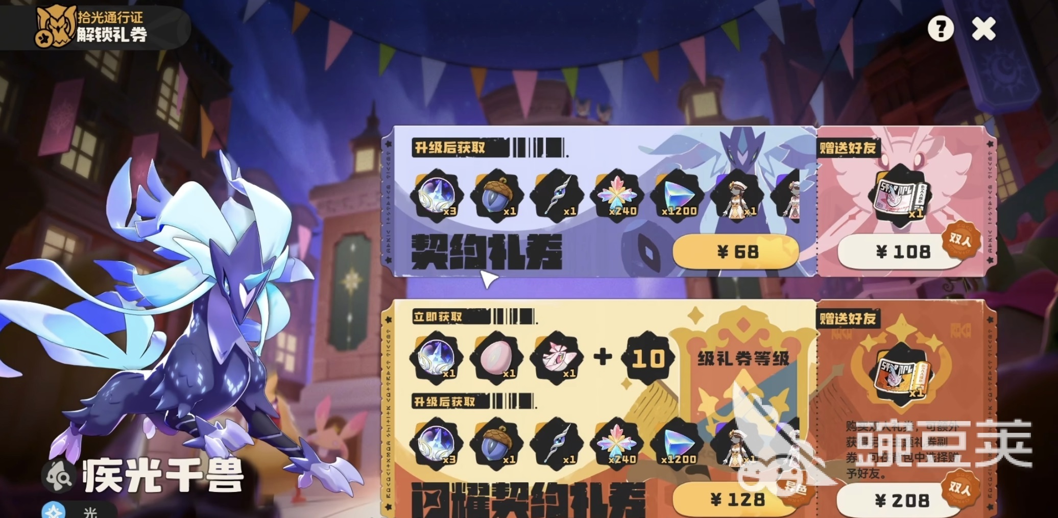 普通版战令包含以下核心奖励:战令精灵果实二选一(绒仙子或疾光千兽)、3颗织梦棱镜球(赛季限定道具,具备100%捕捉成功率、限定触发炫彩形态、必出“了不起天分”资质)、两套紫色赛季主题时装、12张传说印记、240点愿望星星,以及大量基础养成材料,如经验果与进化所需资源。豪华版在上述全部内容基础上,额外提供五项专属加成:织梦棱镜球数量提升至4颗;独占战令精灵异色蛋(全服唯一获取途径,无其他替代方式);专属战令头像框;战令等级直升10级(大幅缩短高等级奖励解锁周期);以及一份增配版养成资源包。