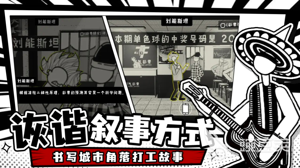 打工人的真实剪影都囊括于其中了,告别以往绚丽的色彩,独创黑白画风,以诙谐幽默的方式向玩家们讲述城市角落的打工故事,让每一个打工人感同身受。以现实都市为题材打造的rpg游戏,在游戏的世界中仿佛看到了另一个自己。50+人生工作发展方式,你能否成功走上自己的专属致富之路?独立单机游戏让更多社恐玩家也能玩的放心!