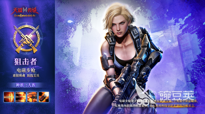 第二个也是人族阵营当中的狙击者,一般搭配步枪就可以带来远程输出效果,这种优势就是无视当前的距离,在爆发伤害上面能够打出的伤害是比其他的职业都要高的,而且,狙击者目前在PVP当中能够带来的一些后排输出效果也是最强的,打Boss的话,他上场的主要就是通过弱点攻击来选择狙击对手,如果是蹲点输出的话,他会来带来更多的职业强度优势,不过需要增加更多暴击词条的装备才可以带来更高的输出。
