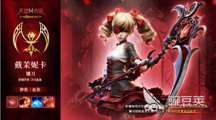 第3个大家可以选择的是黛茉妮卡这类近战效果当中非常不错的职业,搭配镰刀这类武器的话,可以快速的攻击,并且造成多次追击,虽然也是近战输出但是在高速移动的同时,过程中可以通过技能附带更多的持续类型效果,比如说各种折磨印记,对于后期敌人血量的威胁还是比较大的,而且黛茉妮卡在多次连击效果当中,暴击输出也是非常高的,所以在玩儿PVP的时候收割效果非常强。
