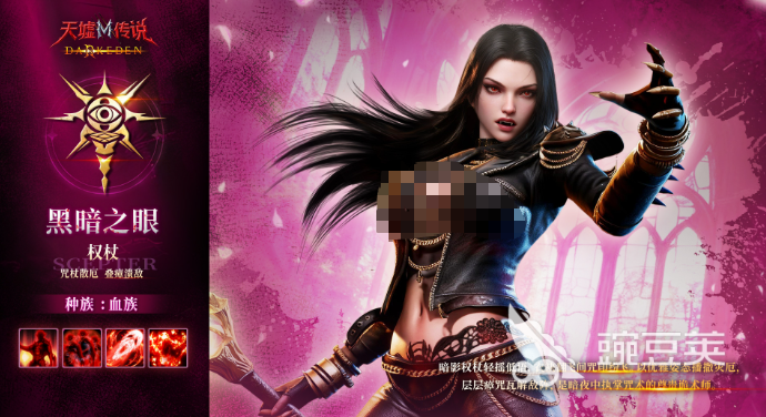 第二个的话,黑暗之眼在血族当中负责远程控制的能力是不错的,可以搭配的武器是权杖,这里诅咒的范围攻击包括各种负面效果都可以通过这个职业带来,对于敌人来说,有这个角色在场上,那么输出一举一动都会受到很多的影响,所以如果玩儿团队类型的作战,比如说公会战里面,就可以用来削弱敌人,建议在后期加点效果当中一定要注意,诅咒技能的这些时间非常重要。