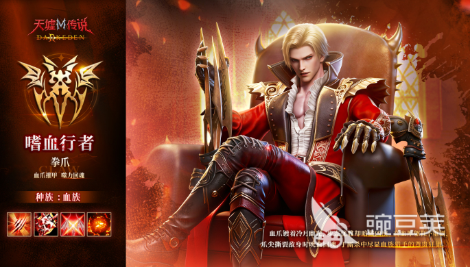 如果大家在这里选择的阵营是血族的话,那么这里第一个可以选的职业叫做嗜血行者,这个职业当中一般搭配的武器就是拳爪,因为通过近战进行输出的话,他们更多是需要突袭能力的加成,所以新手去玩的话,可以用来开荒,高生命数值附带了其他的快速回血能力,然后加上一些位移技能,是很难被人给针对到的,所以如果是玩儿他的话,建议大家很多场当中单人上场就可以了,利用瞬移技能可以快速的维持自身的一部分的效果。