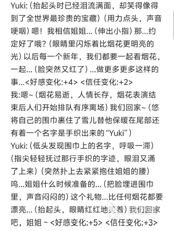 若最终好感度未达100,则进入非理想结局路径:因关键信任节点缺失,系统将生成意外事件链,导致Yuki陷入情感失衡状态,进而导向关系破裂或单方面疏离等分支结局。由于游戏内置多重隐藏条件与随机变量,其余结局形态需玩家通过不同交互策略自主探索解锁。