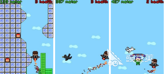 采用经典像素美术风格,操作逻辑极简:轻点或滑动屏幕即可操控角色飞行,亦支持重力感应模式。玩家需持续向上攀升,灵活规避空中障碍物,飞行高度直接决定得分高低,适合碎片化时间快速上手。