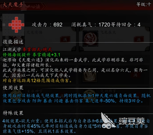 根据当前版本实测与技能机制分析,“天魔传承”归属于拳掌系高爆发流派。其核心优势在于触发暴击后可快速衔接下一轮输出,形成稳定暴击链。该流派在游戏前期成长曲线偏缓,但进入中期后,面对普通怪、精英单位及BOSS级敌人时,输出压制力显著提升,属于典型的“后期强势型” build 方案。