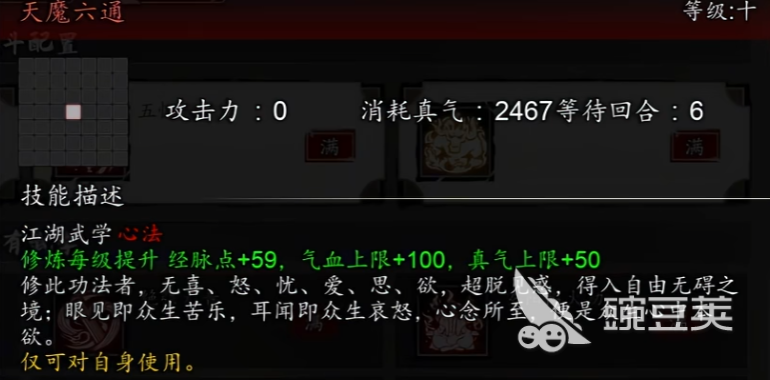 心法组合方面,首选核心为“天魔六通”,提供关键的连招节奏支撑;为强化循环效率与续航能力,建议同步搭配“惔神秘鉴”与“五恒天经”。若追求极限输出稳定性,可进一步补入“清风云决”,构成四心法协同体系,此为当前版本综合强度最优解。