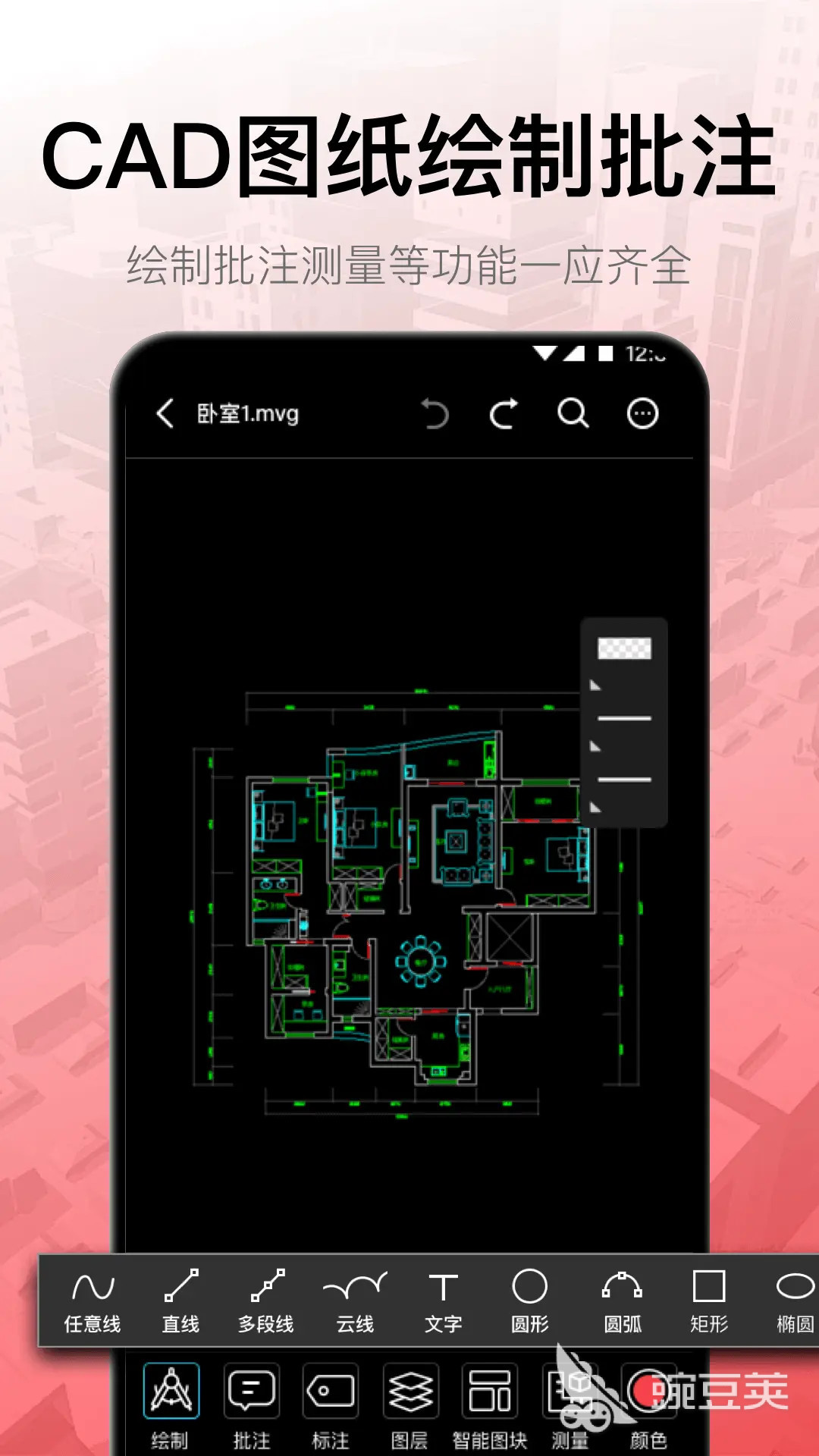 这是针对工程相关行业的非常有用的工具,提供了看图制图等相关功能,大大提高了办公效率。可以直接在这里查看各种细节,手指拖动就能缩放。还能够对已经做好的图纸进行一键标注或者是其他方面的简单操作。这里还集成了很多模块,轻松一点就可以完成图块制作。