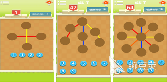 全年龄段适配的数学思维训练工具,涵盖入门到进阶多层级关卡。界面顶部设有多组空白圆圈,底部提供1至若干数字方块;玩家需将数字拖入圆圈,并确保每条同色连线上的数字之和完全相等。每一关题型独立设计,要求玩家同步运用观察力、计算力与规律归纳能力。