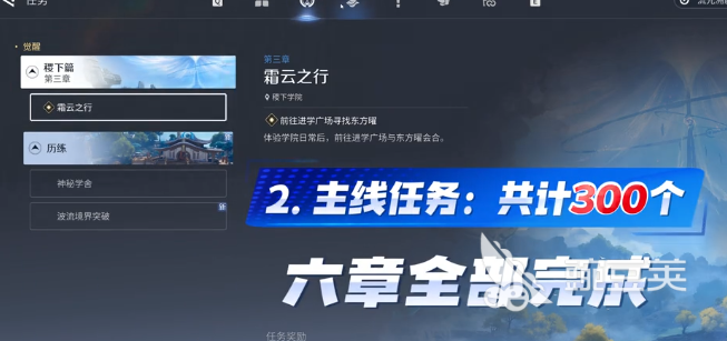 第一个自然就是活动类的奖励,这就是初期最容易获取的福利。全部做完之后就可以拿到2050个。赛季开始之后同步上线各类的限时活动,新手福利,每天只需要花几分钟就可以完成简单的任务。就能够稳稳的拿下这一部分的资源,不需要浪费太多的时间,这就是一个白给的福利。这就是主线任务,游戏目前开放到6个主线,在全部通关完成之后可以拿到300个。主线任务不仅可以解锁游戏的剧情,还可以顺带拿资源。