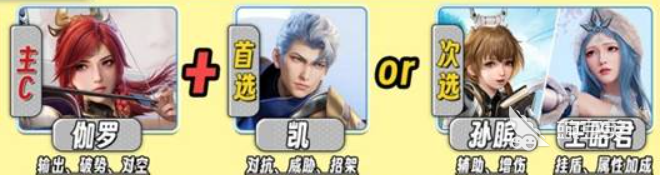 这里在搭配阵容时很多玩家前期用的搭配就是伽罗搭配恺,这样的搭配也在输出位置以及前排位置上面保证了互补,其中的伽罗就是游戏中的强势主C,她的强势能力在于有足够的对空能力,而且在输出上面确实是有比较高的数值,而另外的搭配恺主要就是让阵容角色切换的时候能够有一定的对抗强度,他的强度也是可以招架住很多敌人的攻击,特别是前期大家需要一定容错空间的时候,选用恺的可能性会更大,且在这两者搭配成功时,大家可以用到的操作也没有那么高,在熟悉操作之后还有更多的前期舒适空间,后期还可以替换,比如这里的孙膑就是可以替换恺,这样在不用前排角色之后,上孙膑就会有更多的辅助功能,让伽罗有更多的能力可以放在输出上面,而且孙膑可以带来的增伤数值确实不少,还有王昭君也是可以替换恺的,这里王昭君虽然不算一类固定的前排角色,但是确实她的挂盾效果还是好用的,而且在上面可以带来的属性加成也不错,所以在伽罗需要的加成上面她也可以用到,所以只要保证这里伽罗的强度在线,后面一个位置大家可以有很多灵活切换的空间哦。