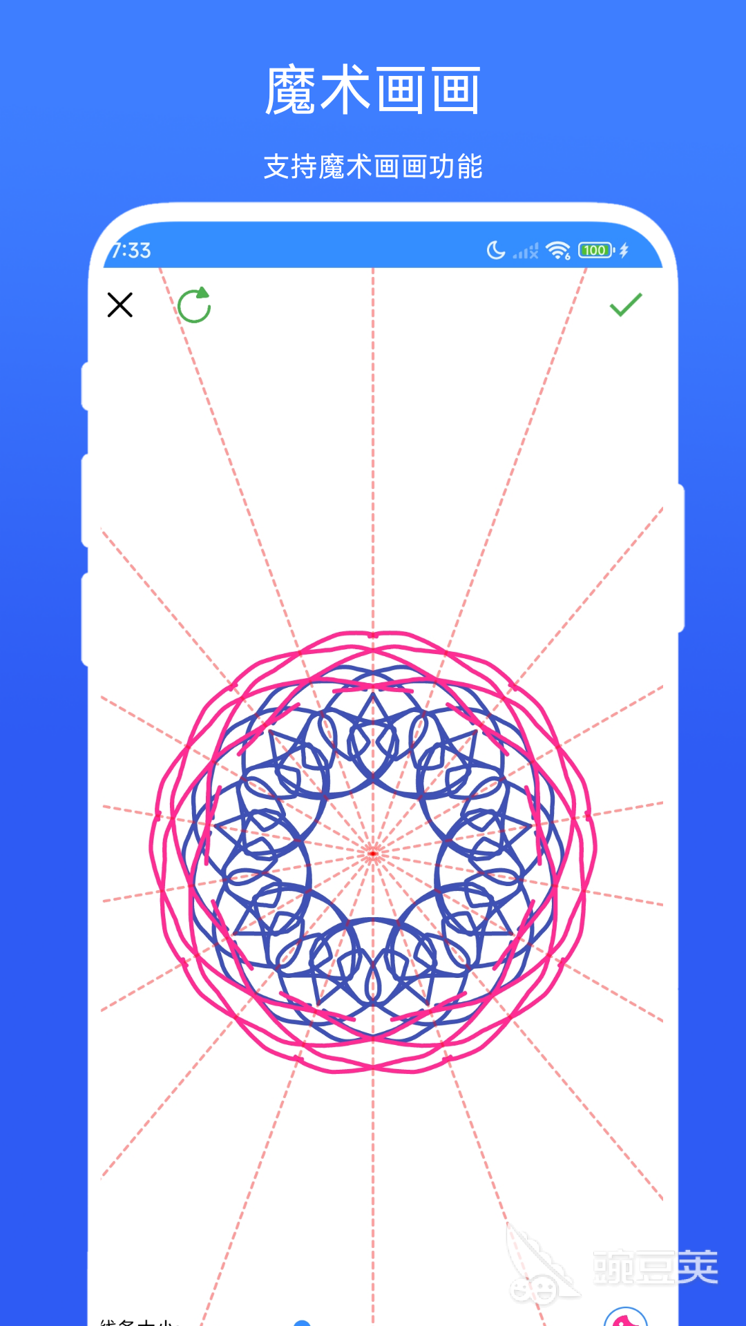 专治对称构图难题——内置多轴对称模式(水平/垂直/径向/旋转),支持自定义对称线数量与角度;图形辅助工具可一键生成标准三角形、正圆形、矩形等基础形状,并实时显示尺寸参数与坐标参考线。手绘稳定性优化出色,线条延迟低,适合练习结构与比例把控。