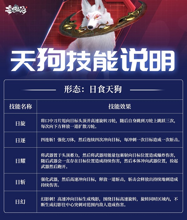 以上就是妄想山海天狗双形态技能介绍的全部内容了,希望能够帮助到各位玩家。更多游戏相关的内容各位玩家们可以关注,会一直给各位玩家们带来手游攻略。