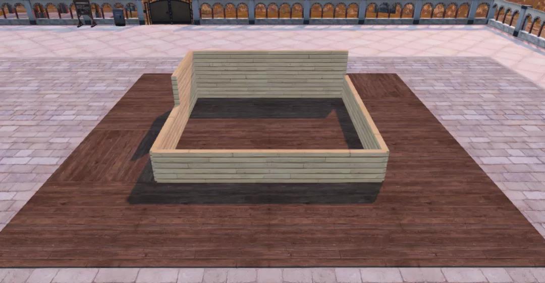 5、在回廊镂空处再铺上厚石地板,并在墙壁空缺处加上一面半身墙。