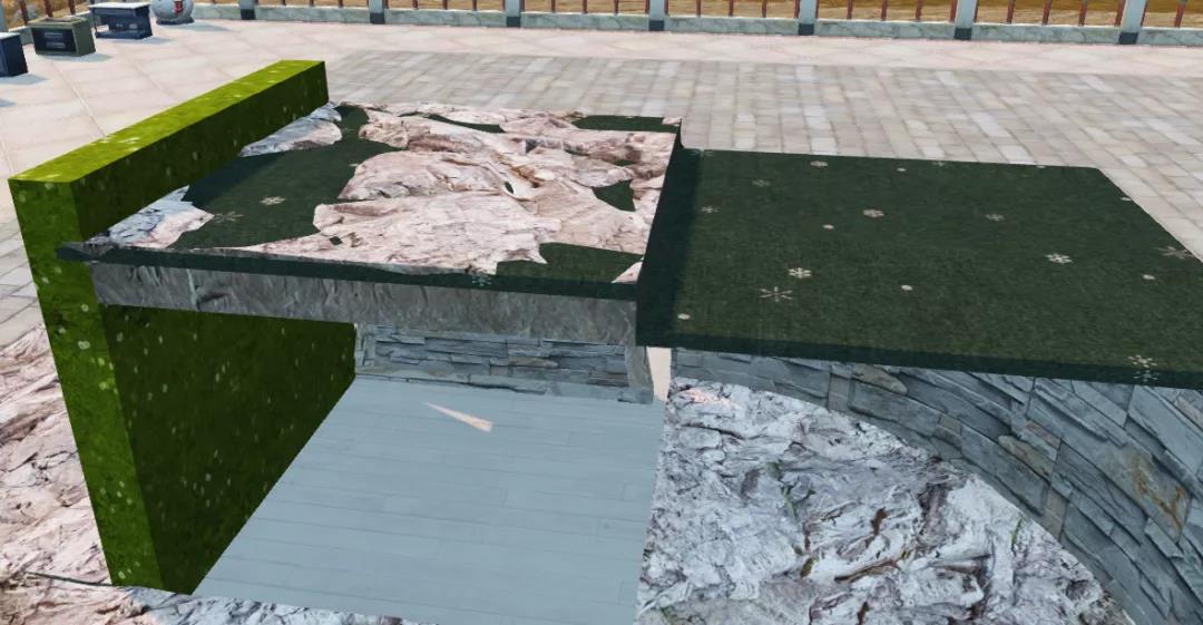 6、把小圆墙放在普通地板之上,再把矮墙放在小圆墙上二者之间,即可形成一定的悬空空间从而使放在高低差点处的厚石地板,更多地凸出普通地板的表面。