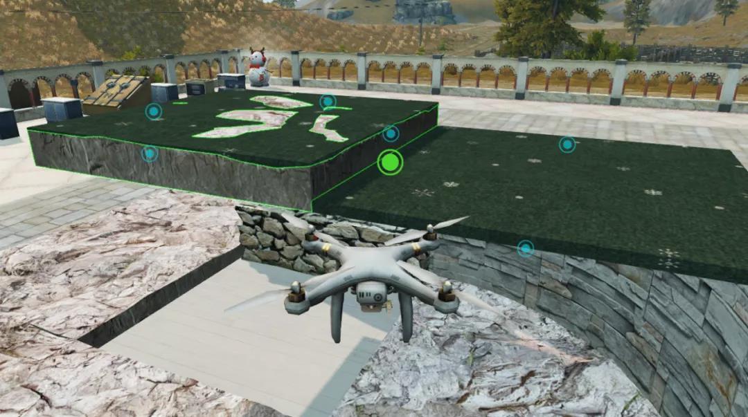 1、首先在普通厚度地板上放置矮墙,在矮墙上放置小圆墙,然后在圆墙上放置普通厚度的地板,并为地板贴上绿色圣诞壁纸。