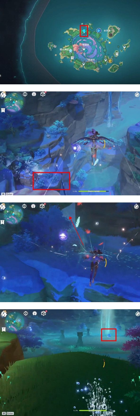 1、玩家传送到珊瑚宫上方的传送点之后,往地图右侧飞;