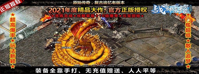 全新冰雪单职业版本《战神荣耀(新冰雪狂暴)》1:1复刻端游,刀刀极品装备全爆,自由交易元宝回收,自由摆摊,轻松泡点挂机。传承单职业战士角色,混搭各职业技能,轻松泡点挂机升级,打怪装备全爆,完美地还原了端游版本的内容和玩法。在这里,玩家将再次开启经典传奇之旅,重温兄弟情谊、怀旧激情年代、成就传奇人生。