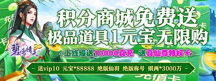 碧雪情天3D(送10000真充)上线壕送10000元真充,登录送1000积分可激活积分至尊商城,极品道具每日1元宝/1积分无限购!无限福利永久每日领10元真充值卡,10积分卡,无限十连抽!1元即送酷炫坐骑碧蓝炎龙,再送直升100级经验丹!无敌资源,98送500真充,功夫·宗师,斗皇套装任意领!开局送vip10,元宝*88888,仙羽-流光金翼,绝版称号-不服来战,银两*3000万!3D玄幻仙侠RPG手游,特色拉风坐骑、时装羽翼华丽加冕,百变时装,Q萌灵童,神兵利器唾手可得,千人同屏,激情暴燃仙界大战一触即发。
