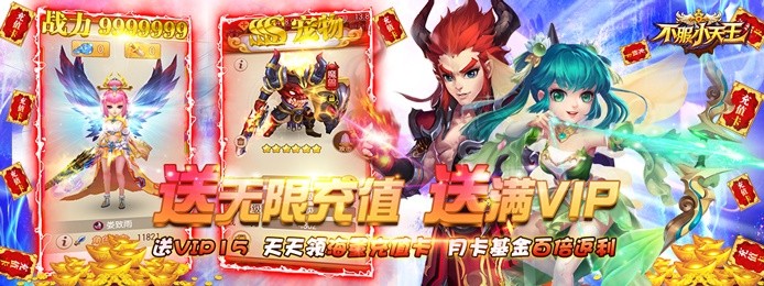 《不服小天王(送无限充值)》是一款以激爽战斗为核心的玄幻回合制手游。福利大幅提升,开局送VIP15,金元宝*58888,银币*200W,飞仙祈福签*10(十连寻宝),藏宝图*10,5级还送官方助手,天天送充值卡!2级更送1888元超级大红包,无级别神器光武!让你玩到爱不释手!游戏突破传统中国古代玄幻观念、领略绝妙回合制体验。精妙剧情对白、爽快升级体验,东方独特画面想入非非、魂牵梦绕。百变个性时装,打怪泡妹两不误!本作玩法朴实简易,良心福利嚣张至极!各位大侠还请您进来一试,在三界冥冥之中潇洒走一遭,展现一段波澜壮阔的儿女情缘。