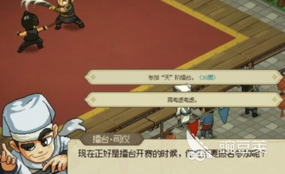 在黄阶擂台获胜后,休息一日,再次与司仪对话选择玄阶擂台。参与费用为2贯钱,五场连胜的对手等级在30至40级之间。击败他们后不仅能获得5贯钱和150点名声,还会进一步拉近与司仪的关系。玄阶擂台难度略有提升,但依然在可控范围内。