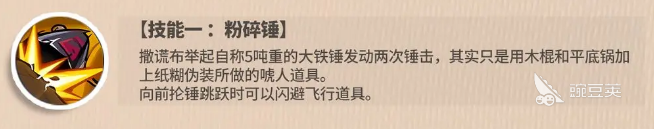 接下来是乌索普的标志性攻击方式“一技能粉碎锤”。这个技能看似威力巨大,实际上是一种以假乱真的伪装。乌索普举起所谓的5吨大铁锤进行两次攻击,但事实上这只是他用木棍、平底锅和纸糊道具所制造的假象。在向前抡锤跳跃时,他还能闪避飞行道具,这使得他在面对远程攻击时有了更多的应对策略。