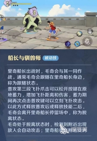 里奇船长在外观上面是一位被毛奇驱使的神兽狮子,很多玩家都喜欢这样兽化的角色,本期小编也带来了航海王壮志雄心里奇船长怎么样的相关介绍给大家,其实里奇船长在技能强度上面很多玩家都是小看了他的,他的本身技能释放有技巧,在跟毛奇一起输出的时候就是不错的。