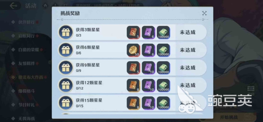 在新服开放后,首先开放的就是撒谎布大作战活动,大家可以在主页面的活动选项中找到,直接点击开始挑战就可以进入其中,这个活动非常考验大家的眼力和反应速度,整个活动一共有7个关卡,每个关卡都有三个星,需要满足相应的条件后才可以获得相应的星,通关时将根据达成的星级条件,获得不同的星级评价,星级越多评价也就越高,自然奖励就越丰厚。