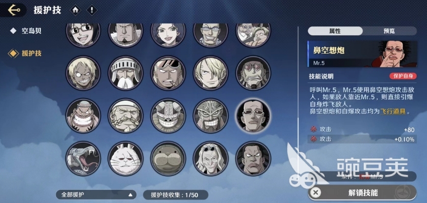 前者注重攻击力的提升,适合那些喜欢以攻为守的玩家,后者则更注重生存能力的增强,适合那些需要在战场上持久作战的玩家,而像这样类似的援护还有Mr.5的鼻空想炮援护技和功夫海牛的海牛罗汉塔援护技能,当玩家呼叫Mr.5后,他会使用鼻空想炮攻击敌人,如果敌人靠近Mr.5,他则会直接引爆自身,炸飞敌人,这种自爆攻击不仅能够对敌人造成大量伤害,还能有效地保护自身不受伤害。