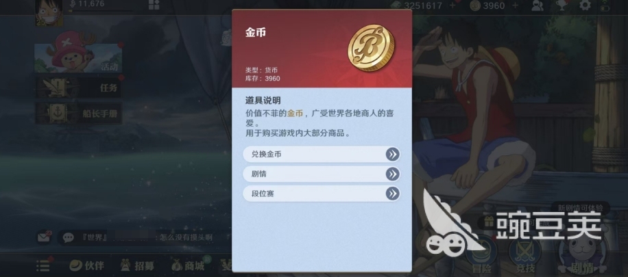 在航海王壮志雄心当中赏金虽然重要,但是大家平时使用的代币金币也是同样重要的,作为一种重要的游戏货币用途也很多,航海王壮志雄心金币如何获取以及使用大家都可以从下面的介绍中熟悉哦,金币它不仅是玩家在商城中购买各类道具、装备以及培养角色时不可或缺的资源,更是衡量玩家实力与成就的重要标志。
