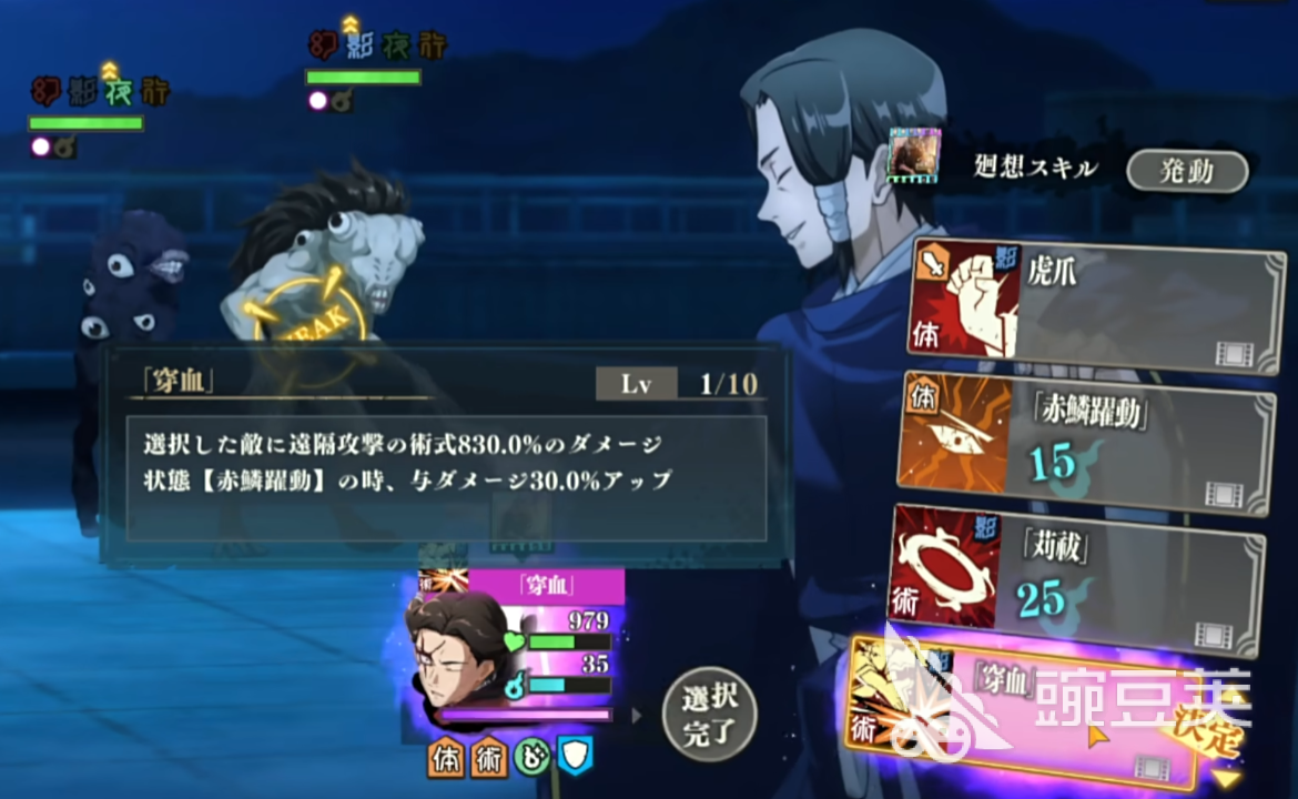 加茂宪纪的一技能可以对敌人造成近距离的体术伤害,但如果是在赤鳞跃动状态下的话,就可以让这一技能的伤害提升并且持续三个回合。