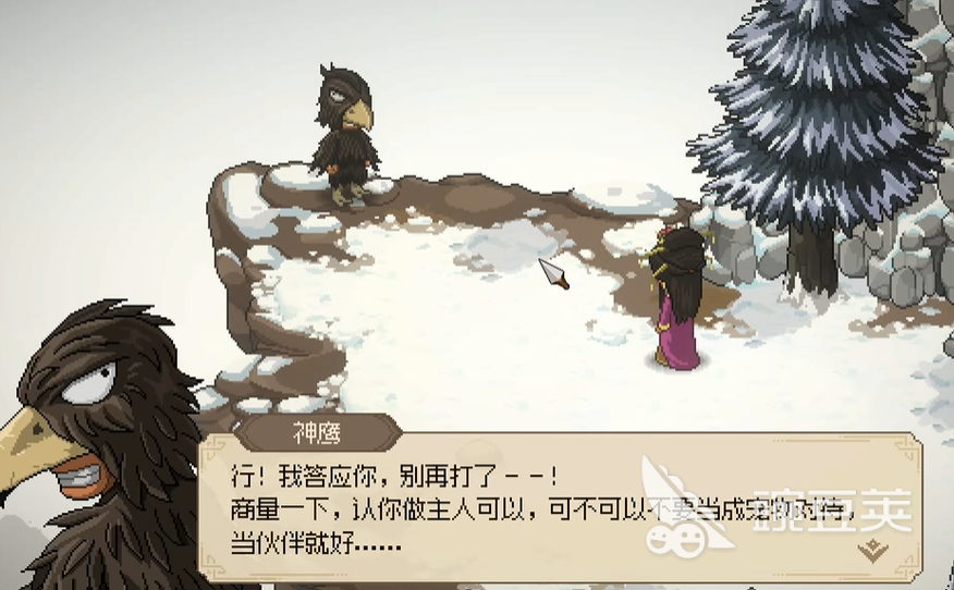 找到之后可以选择与神鹰大侠交手,第一次交手时游戏会给到两个选项,第一个选项是用武力击败对方,赢下这场战斗就会得到认可并可以入队,第二个选项是选择离开,离开之后神鹰大侠会永远的消失之后也无法再招募,所以玩家想招募的时候要做好万全的准备,确保一次性能够击败神鹰大侠,神鹰大侠的潜力非常高,几乎不用玩家的培养就能够达到非常高的武力值。