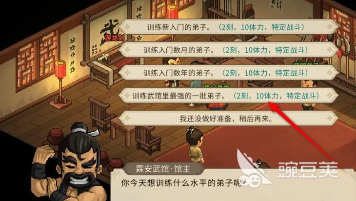 在霖安城中还可以在武馆中打工来获得赚取金钱的方式,首先前往武馆中与馆主对战,直到战胜馆主的十成功力,就会多一个赚钱选项,可以选择训练弟子的强度来获得不同水平的金钱,每一场战斗消耗的时间和体力是一样的,玩家可以先从最初始的来训练直到训练到最强的,一天可以训练四次,这也是一个赚取金钱的方式。
