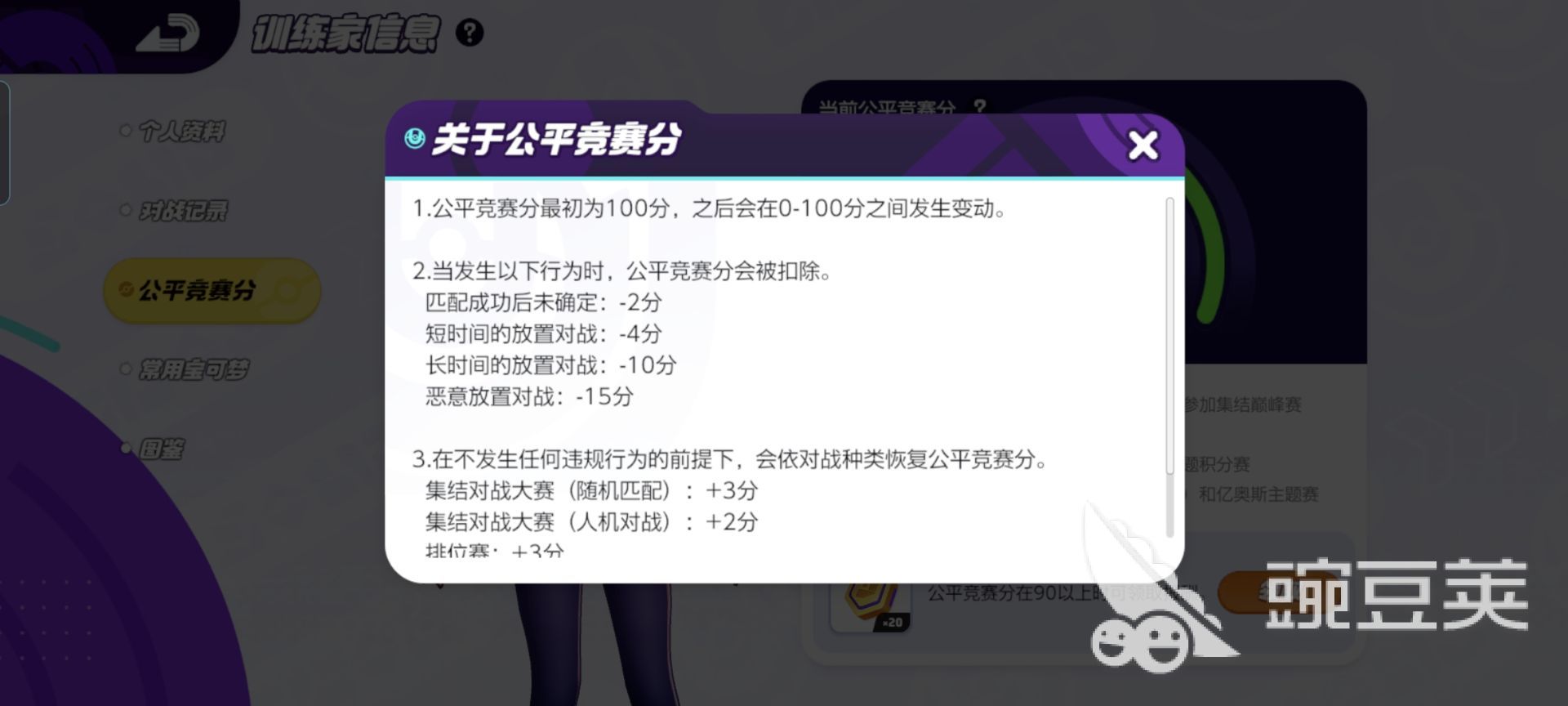 宝可梦大集结这款游戏之所以如此的受到玩家们的喜爱,不仅是因为这款游戏是一款5v5的竞技类型游戏,更是因为这款游戏是一款可以让玩家在竞技时感受到十分公平的游戏,宝可梦大集结公平竞赛分在游戏里面是一个非常重要的衡量标准,有了这个标准就可以衡量出玩家是否符合竞技的条件,那么宝可梦大集结公平竞赛分的规则到底是什么呢?为了让大家在竞技时不触犯竞技规则,下面小编就来给大家详细的介绍一下宝可梦大集结公平竞赛分的相关规则吧。