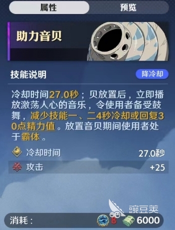 助力音贝,尽管拥有27秒的较长冷却时间,但其带来的增益效果绝对物超所值,一旦激活不仅能够鼓舞士气,更重要的是,它能减少角色一、二技能的冷却时间达4秒之多,或是瞬间恢复30点精力,为连续作战提供了保障,而且助力音贝启动期间,使用者将进入短暂的霸体状态,这一特性使得擅长连续控制或需要稳定输出环境的角色能够更加自如地发挥实力,无论是正面交锋还是战术撤退这个空岛贝都能带来加成效果。