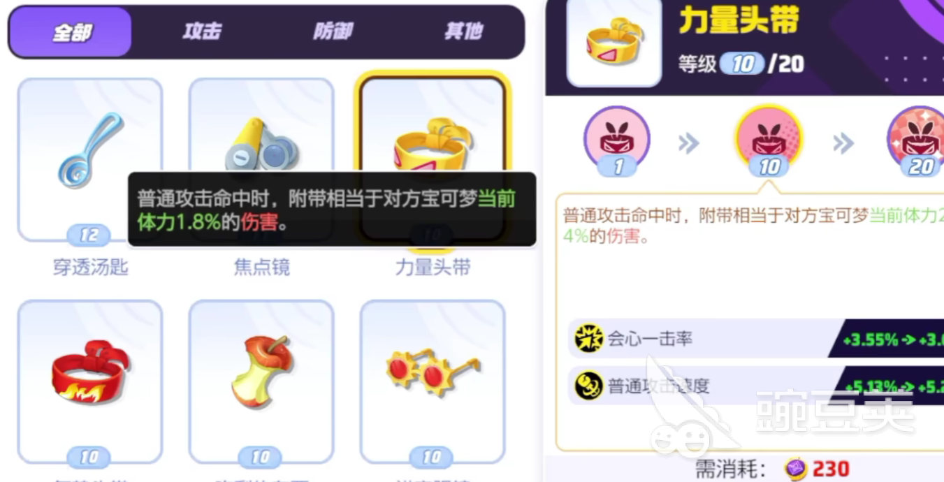 力量头带可以增加攻击速度和攻击倍率,对于一些射手型的宝可梦而言是比较好的持有物,博学眼镜同样可以增加特攻数值,但是他的特攻数值增加倍率和宝可梦小精灵基础的特工属性相关,如若对应宝可梦的特攻属性较低,携带博学眼镜是没有任何用处的。