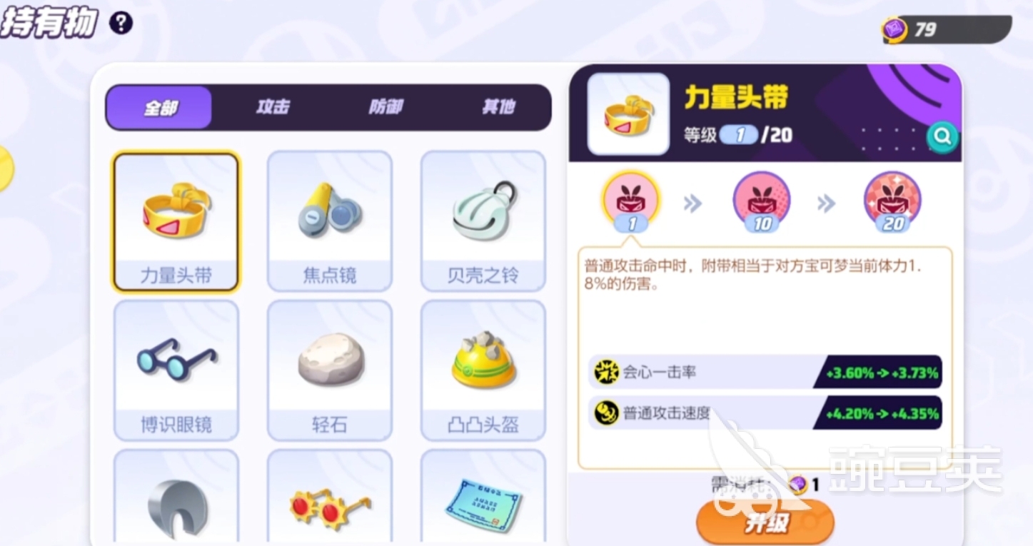它可以增强这些宝可梦的技能伤害,如果大家选择的宝可梦需要频繁使用技能并且依赖技能输出,那么贝壳之铃也是一个不错的选择,它可以减少技能的冷却时间,此外对于那些特攻较高但不擅长通过投分叠属性的宝可梦,如冰伊布,博识眼镜则是一个理想的选择,对于物攻输出型的宝可梦,力量头带是一个适合大多数射手的选择。