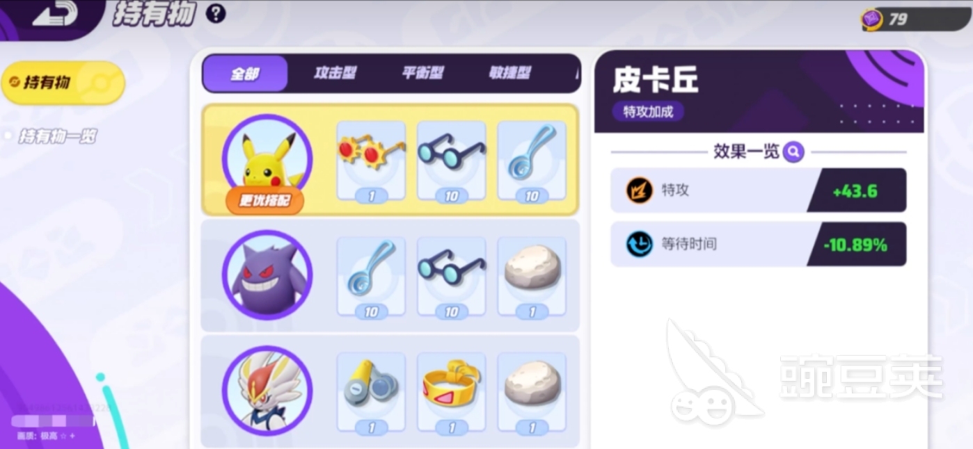 首先大家需要来了解一下持有物道具的基本概念,持有物分为攻击类、防御类和其他类型,每种类型的持有物都有其独特的效果,可以为对战提供不同的帮助,例如,攻击类持有物可以提高宝可梦的技能伤害,而防御类持有物则可以增加宝可梦的生命值或减少受到的伤害,每只宝可梦最多可以自由搭配三种不同的持有物,这些持有物主要通过能量中心传送获得。