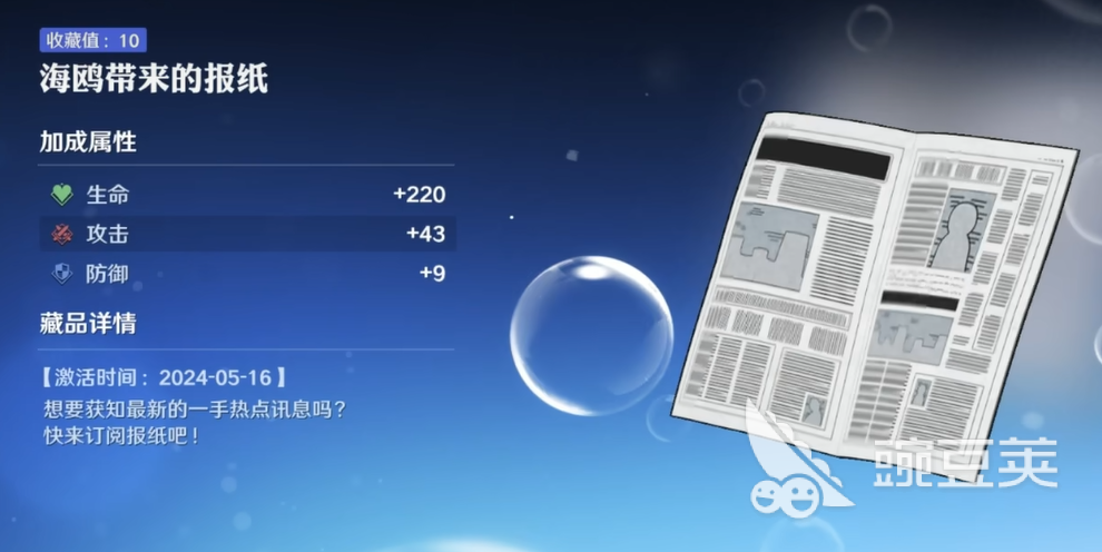 在游戏主界面中,偶尔会有海鸥飞来并发光。点击它后,便能获得这个特殊的藏品。海鸥在航海王的世界里象征着消息的传递,这份报纸也承载了玩家冒险的记录。