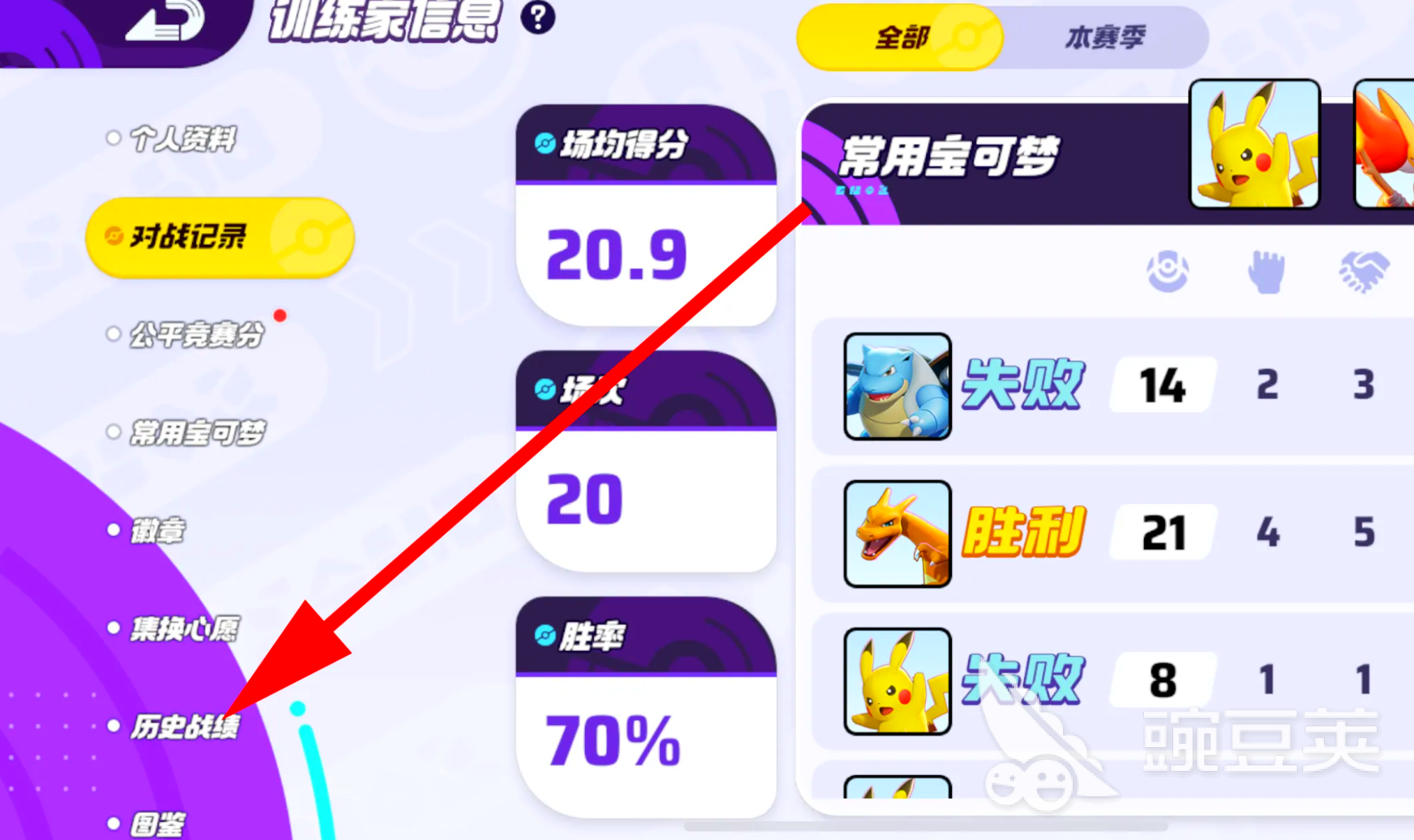 宝可梦大集结作为一款主打多人团队竞技的对抗性手游,战绩对于玩家相当重要,今天介绍下宝可梦大集结历史战绩怎么看,玩家们可以在对战中了解对战双方的技巧,及时查看自己的阶段战绩从而了解自己目前的胜率分布,不断学习更强的技巧与对战手法,从而让自己更快的进步,一起来看看都有哪些操作吧。